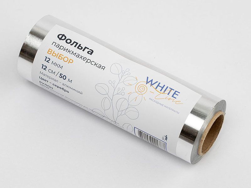 Серебряная парикмахерская фольга от White Line сделана из алюминия и предназначена для парикмахерских работ.