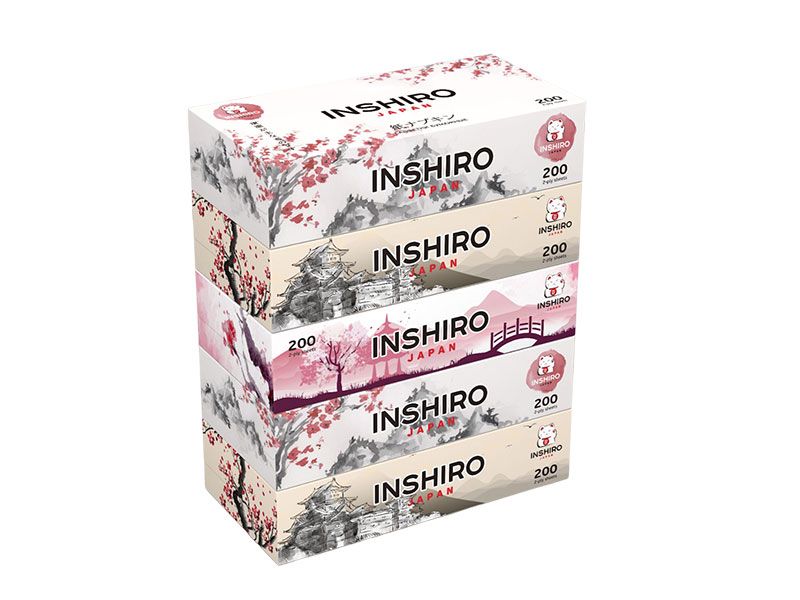 Салфетки бумажные INSHIRO, серия "SilkFlower" двухслойные, 200 шт/упаковка, Китай