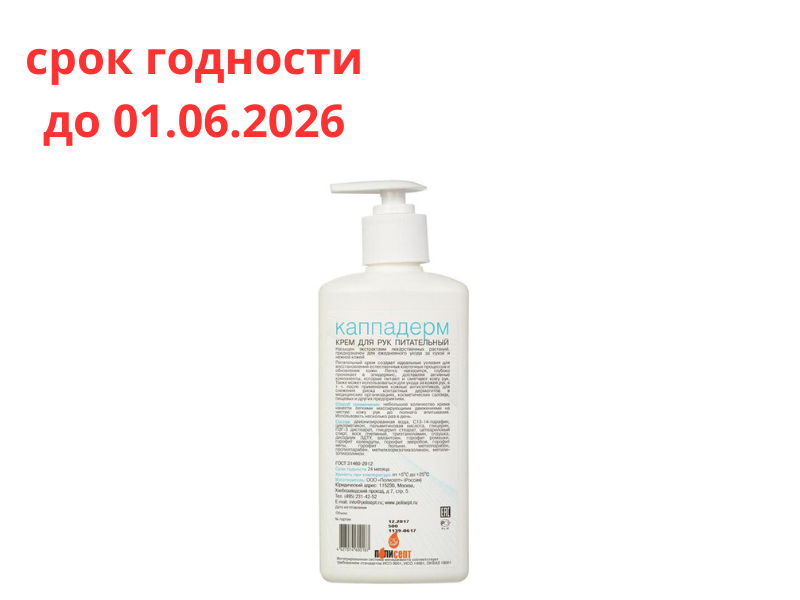 Крем питательный для рук "Каппадерм" (питательный и увлажняющий), 0,5 л (диспенсер), Россия (ООО "Полисепт")