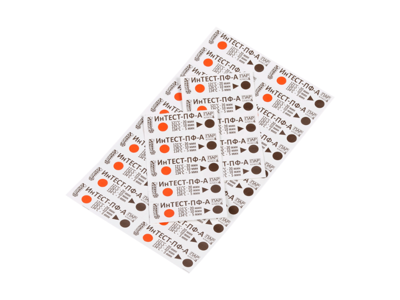 Индикатор химический многорежимный одноразовый паровой стерилизации ИнТЕСТ-ПФ для режимов стерилизации 121 оС, 20 мин, 126 оС, 10 мин, 134 оС, 5 мин, 500 тестов, без журнала, Россия (ООО "НПФ "Винар")