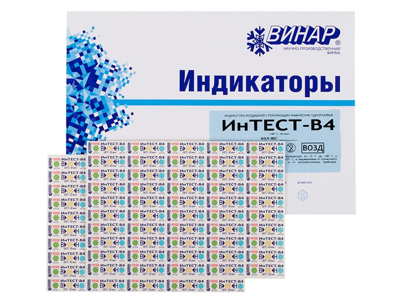 Индикатор воздушной стерилизации химический одноразовый Интест-В4 (180°С-60 мин) (с журналом ф.257/у), 1000 тестов, Россия (ООО "НПФ "Винар")