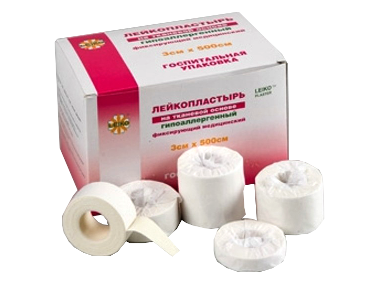 Лейкопластырь Leiko 3*500 см фиксирующий медицинский на тканевой основе (хлопковый), 18 катушек в упаковке, Китай (Jiangsu Nanfang Medical Co., Ltd.), 531228