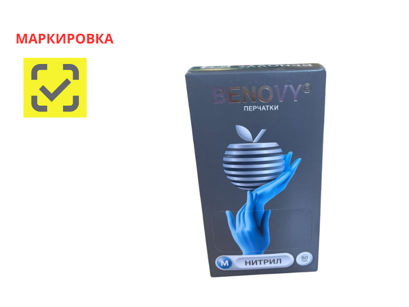 Перчатки медицинские диагностические (смотровые) одноразовые нестерильные "Benovy" нитриловые текстурированные на пальцах, неопудренные, однократной хлоринации, голубые, размер M, 50 пар/упаковка, Китай ("Блю Сэйл Медикал Ко., Лтд.") M222K3