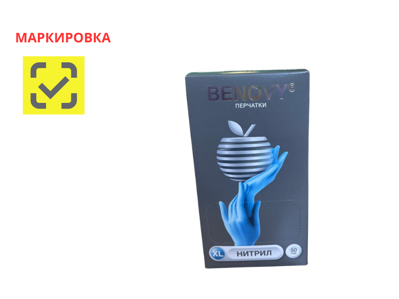 Перчатки медицинские диагностические (смотровые) одноразовые нестерильные "Benovy" нитриловые текстурированные на пальцах, неопудренные, однократной хлоринации, голубые, размер XL, 50 пар/упаковка, Китай ("Блю Сэйл Медикал Ко., Лтд.")