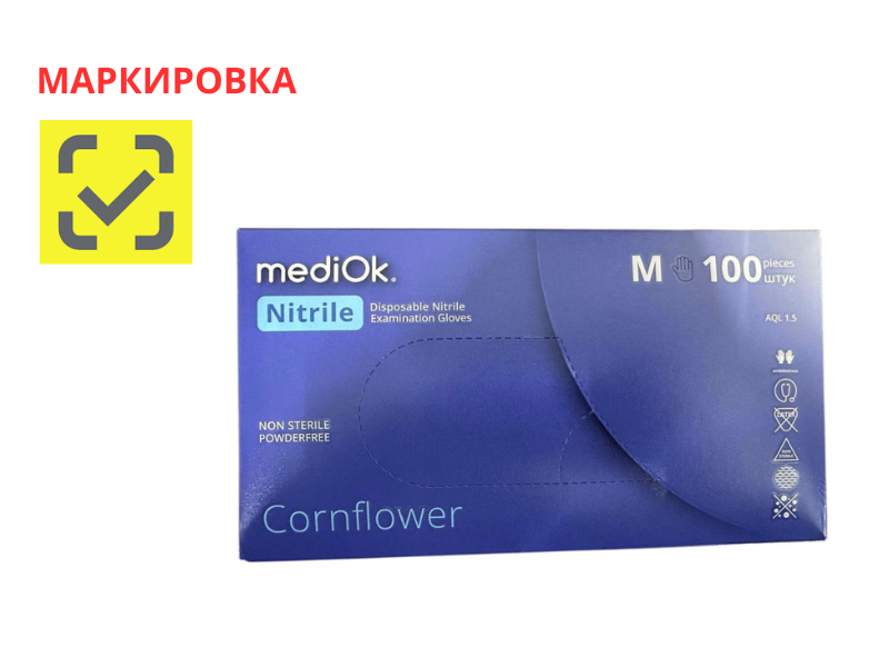 Перчатки MediOK смотровые нитриловые неопудренные текстурированные нестерильные, цвет сиреневый (Cornflower), размер M, 50 пар/упак., Rbnfq ("Блю Сейл Медикал Ко., Лтд.")