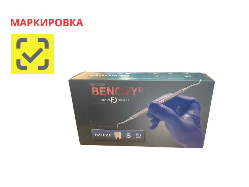 Перчатки медицинские диагностические (смотровые) одноразовые нестерильные "Benovy Dental Formula" нитриловые текстурированные на пальцах, неопудренные с однократной хлоринацией (манжета с валиком), цвет сиреневый, размер S, 50 пар/упаковка, Кита