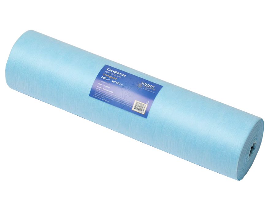 Салфетка одноразовая 40*40 см, марка "White Line" "Выбор" SS12 из нетканного материала спанбонд двойного сложения, плотность 12 г/м2, цвет голубой, 200 шт/рол, Россия (ООО "Белая линия") 11069