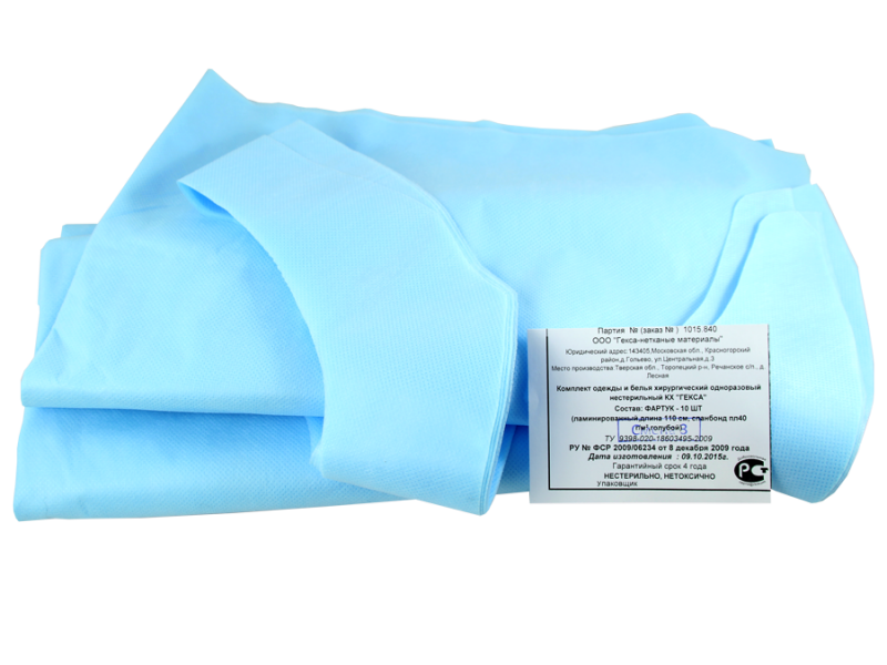 Фартук хирургический длина 140 см нестерильный, ламинированный спанбонд плотность 35 г/м2 (40 г/м2), 10 штук в упаковке, Россия (Гекса-нетканые материалы)