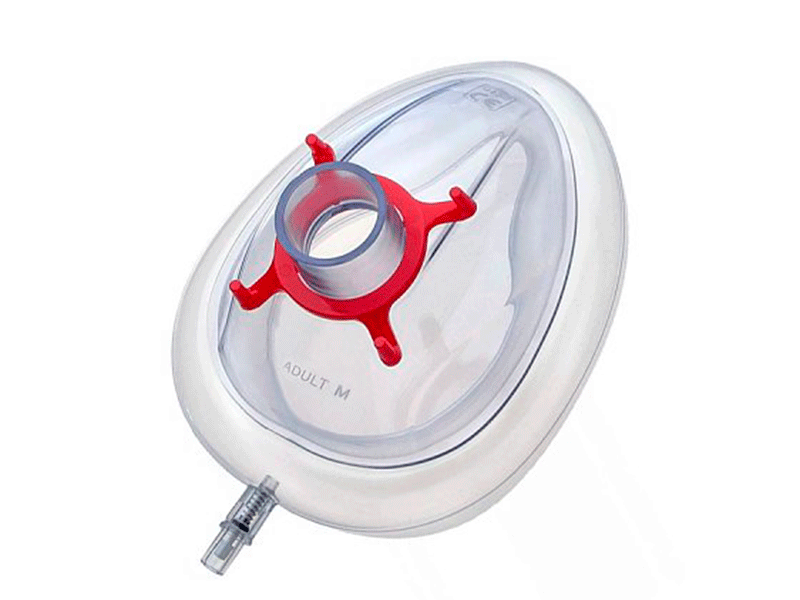 Для проведения ингаляционной анестезии на фоне самостоятельного дыхания и/или вспомогательной и принудительной вентиляции легких. Изготовлена из жесткого прозрачного пластика анатомической формы с мягкой, заполненной воздухом, манжетой по периметру маски. Манжета формы, повторяющей контур носа с внутренней стороны. Разъем 22F со стороны дыхательного контура, цветная маркировка перекрестного крепления, расположенного на основании разъема с дыхательным контуром.