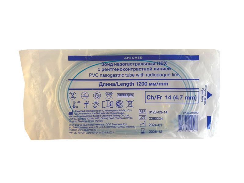 Зонд назогастральный Apexmed СН/FR08, 120 см. С РКЛ, одноразовый, стерильный, в упаковке 60 шт, Нидерланды (Apexmed International B. V.) 0123-03-08