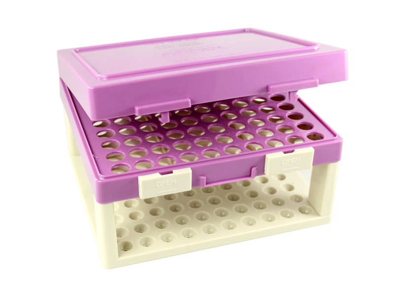 Штатив снабжен специальными пазами и антискользящей поверхностью, что позволяет ставить один штатив на другой, тем самым экономя рабочее пространство в лаборатории. За счет крышек различных цветов можно легко отделить пробирки внутри лаборатории.