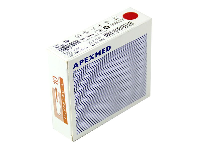 Лезвие для скальпеля одноразовое Apexmed №10 из углеродистой стали, 100 шт/упаковка, Индия ("Aditya Dispomed Products Private Limited") 0601-01-10