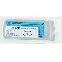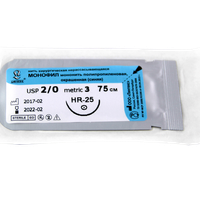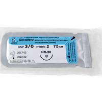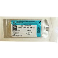 Монофил синий МР(1,5), USP(4/0), длина 75 см, игла колющая HR-20, 1/2 окружности, Россия (ООО "Линтекс") 13215A200750