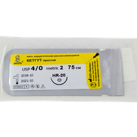 Кетгут простой МР(2), USР(4/0), длина 75 см, игла колющая HR-25, 1/2 окружности, Россия (ООО "Линтекс") 17020A250750