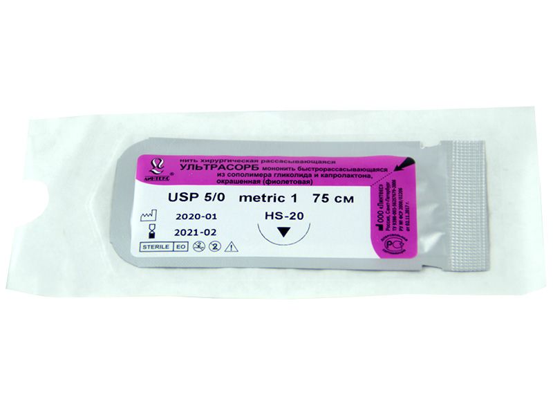 Противопоказания: мононити УЛЬТРАСОРБ не могут применяться там, где необходима длительная аппроксимация тканей. Не рекомендуются для использования сердечно-сосудистой хирургии, в том числе при имплатантации искусственных устройств, таких как искусственные клапаны сердца и синтетические сосудистые протезы, и нейрохирургии.