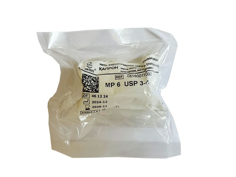 Нити КАПРОНрекомендованы для наложения швов на коже, подкожной клетчатке, мышцах, апоневрозе, в хирургиитрахеи и бронхов. Нити достаточно прочны, эластичны, легко вяжутся хирургическими узлами с использованием стандартной мануальной техники завязывания, а также с помощью инструментов.