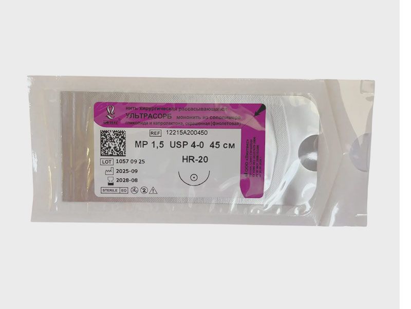 Ультрасорб фиолетовый, МР(1,5) USP(4/0), длина 45 см, игла колющая HR-20, 1/2 окружности, Россия (ООО "Линтекс") 12215A200450