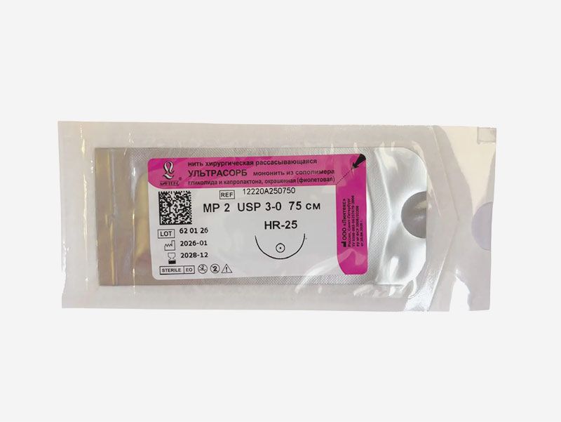 Ультрасорб фиолетовый, МР(2) USP(3/0), длина 75 см, игла колющая HR-25, 1/2 окружности, Россия (ООО "Линтекс") 12220A250750
