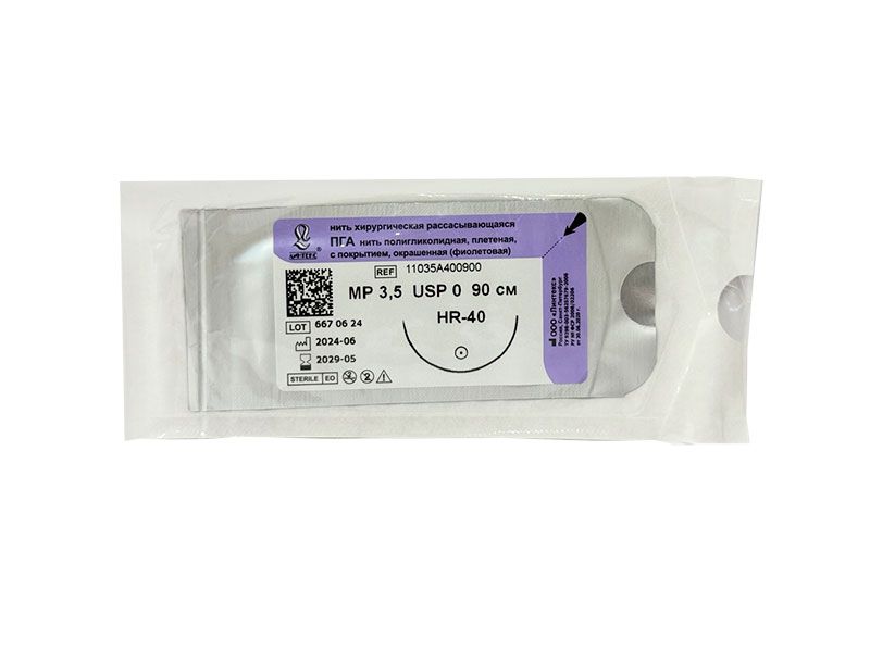 ПГА плетеный фиолетовый МР(3,5), USP(0), длина 90 см, игла колющая HR-40, 1/2 окружности, Россия (ООО "Линтекс") 11035A400900 -