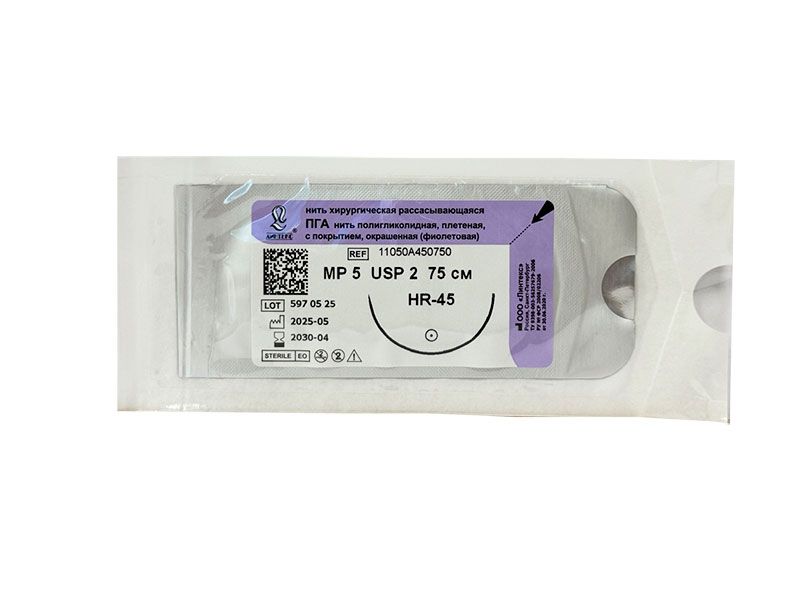 ПГА плетеный фиолетовый МР(5), USP(2), длина 75 см, игла колющая HR-45, 1/2 окружности, Россия (ООО "Линтекс") 11050A450750 -
