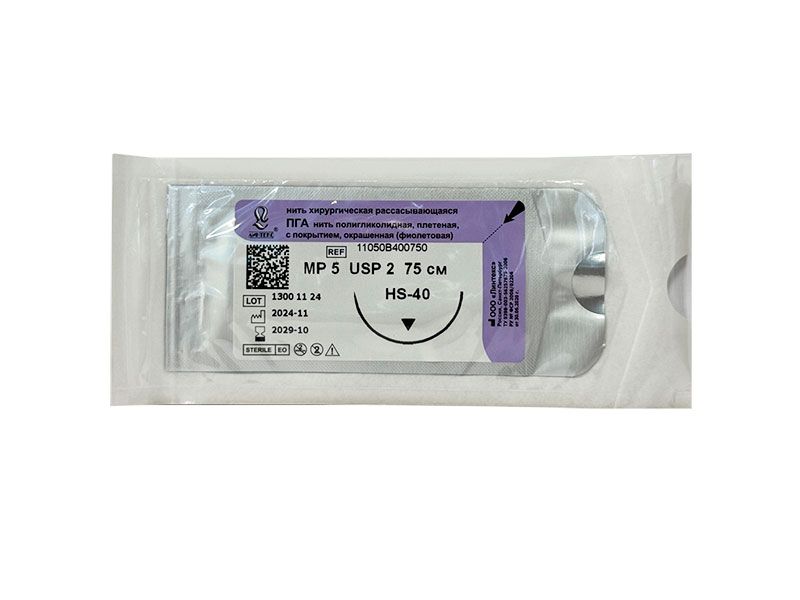ПГА плетеный фиолетовый МР(4), USP(1), длина 75 см, игла обратно-режущая HS-30, 1/2 окружности, Россия (ООО "Линтекс") 11040B300750 Описание: ПГА-рассасывающиеся плетеные синтетически... -