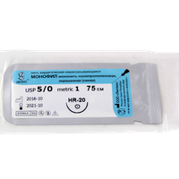 Монофил синий МР(1), USP(5/0), длина 75 см, игла колющая HR-20, 1/2 окружности, Россия (ООО "Линтекс") 13210A200750