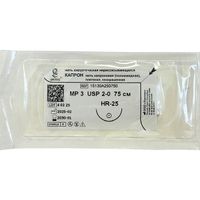Капрон плетеный неокрашенный МР(3), USP(2/0), 75 см, игла колющая HR-25, 1/2 окружности, Россия (ООО "Линтекс") 15120A250750