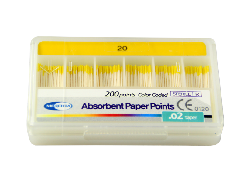 Штифт Медента эндоканальный абсорбирующий бумажный, рр №20, кон. 02, 200 шт/упак., Корея ABS20 P21