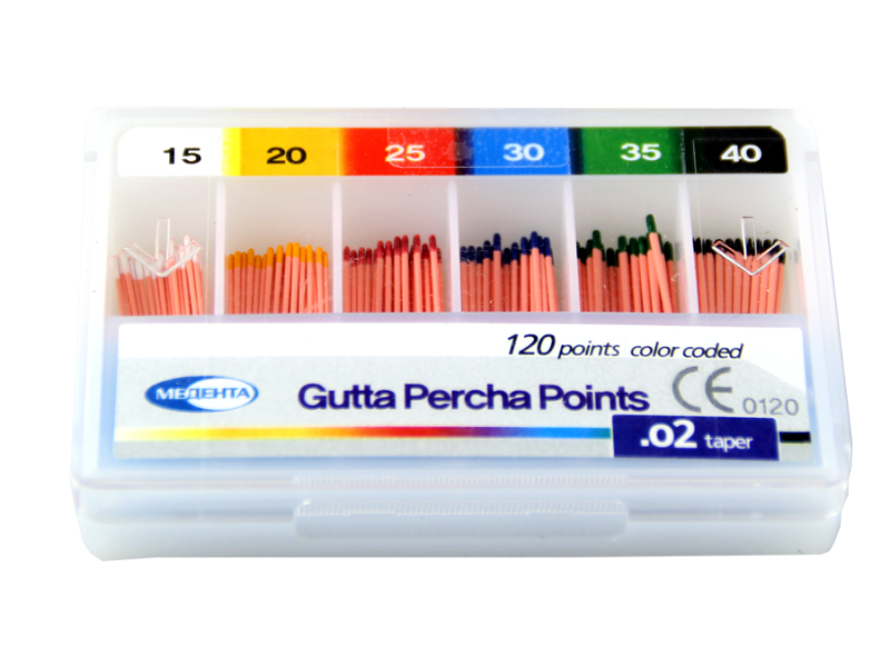 Штифт Медента эндоканальный гуттаперчевый, размер №15-40, конусность стандартная 02, 120 шт/упаковка, Республика Корея (Meta Biomed Co., Ltd.) GUT15-40 P21M