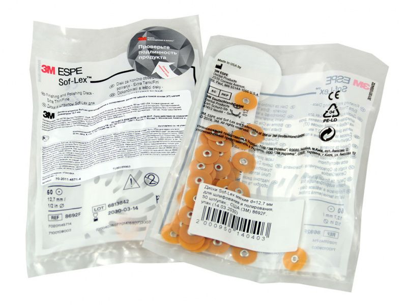 Диски Sof-Lex мягкие, диаметр 12,7 мм для шлифования и полирования, 50 шт/упаковка, США (3M Espe Dental Products) 8692F
