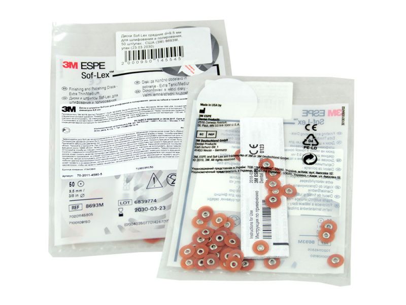 Диски Sof-Lex средние, диаметр 9,5 мм для шлифования и полирования, 50 шт/упаковка, США (3M Espe Dental Products) 8693М