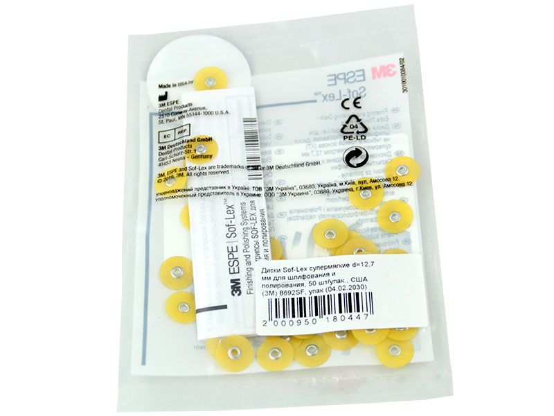 Диски Sof-Lex супермягкие, диаметр 12,7 мм для шлифования и полирования, 50 шт/упаковка, США (3M Espe Dental Products) 8692SF