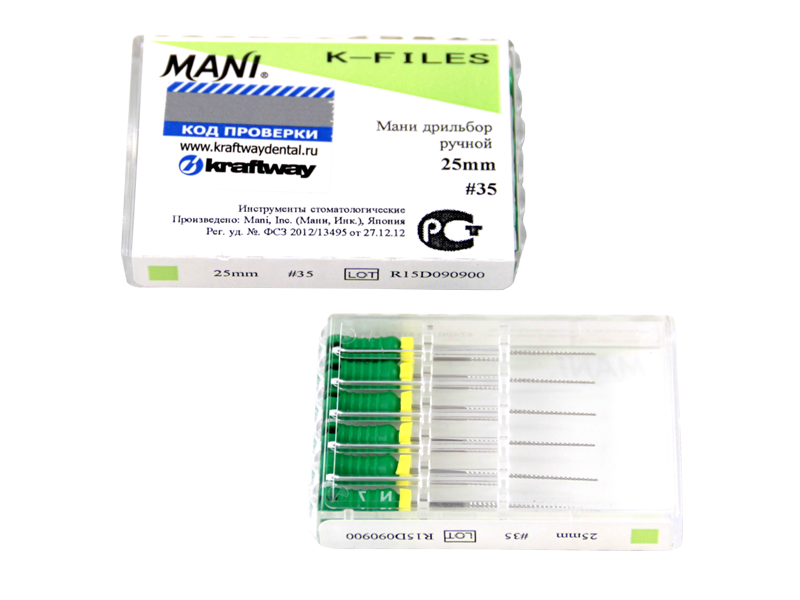 Дрильбор ручной Мани (Mani K-Files) №35, длина 25 мм, ISO-35, 6 шт/упаковка, Япония (Mani, Inc.) 0322008М