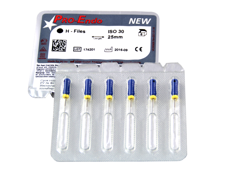 Бурав корневой ручной Про-Эндо Хедстрем Файлы (Pro-Endo H-Files) №30, длина 25 мм, 6 шт/упаковка, Германия (VDW GmbH) V200607025030