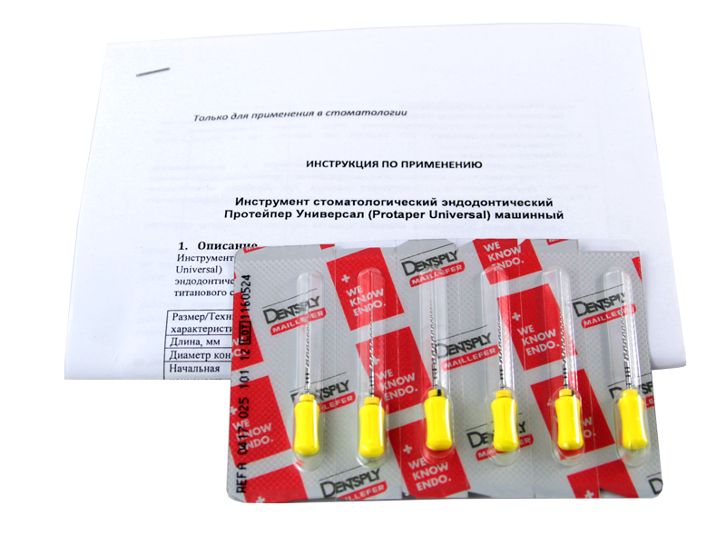 ProTaper (протейперы) - файлы с прогрессивной конусностью, разработанные для обработки труднопроходимых и сильно изогнутых корневых каналов. Инструмент обладает большой гибкостью и высокой режущей способностью.