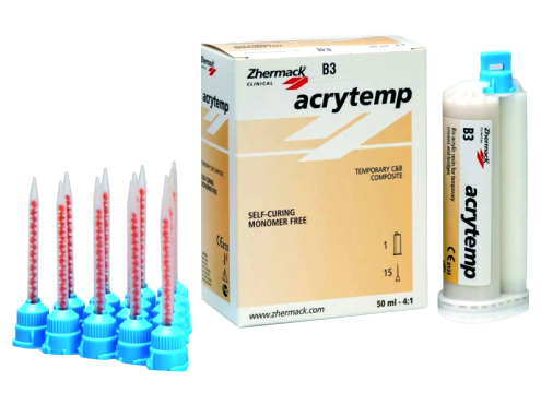 Пластмасса стоматологическая Acrytemp, цвет А2 (самополимеризующаяся биакриловая для изготовления коронок и мостов), Италия (Zhermack S.p.A.)