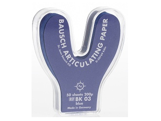 Бумага артикуляционная Бауш ВК 03 (200 мкм), синяя (подкова), 50 листов (в раздаточном устройствe), Германия (Dr. Jean Bausch GmbH & Co. KG) 19610
