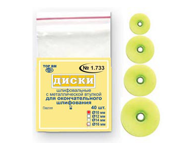 Диски шлифовальные с металлической втулкой, диаметр 10 мм (для окончательного шлифования), 40 шт/упаковка, Россия (ООО "ТОР ВМ") 1.733