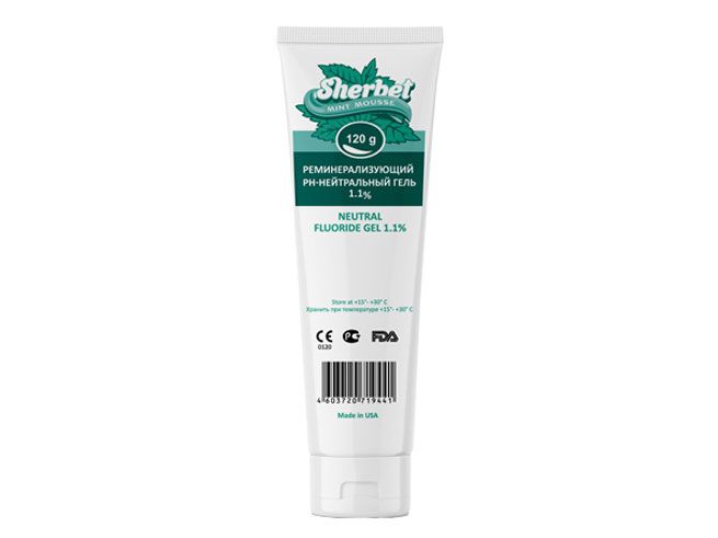 Реминерализующий рН-Нейтральный 1.1% гель Sherbet Neutral Fluoride используется для предотвращения заболевания кариесом и для снижения чувствительности на температурные и химические раздражители (холод, тепло, кислое, сладкое). Гель рекомендован для пациентов, имеющих ортопедические или ортодонтические конструкции в ротовой полости, так как не оказывает негативного действия на их эстетические и функциональные параметры. При высоком уровне развития кариеса, а также в ситуациях с недостаточным контролем за гигиеной полости рта. При повышенной кислотности среды полости рта, эрозии и гастроэзофагальном рефлюксе. Во время беременности.