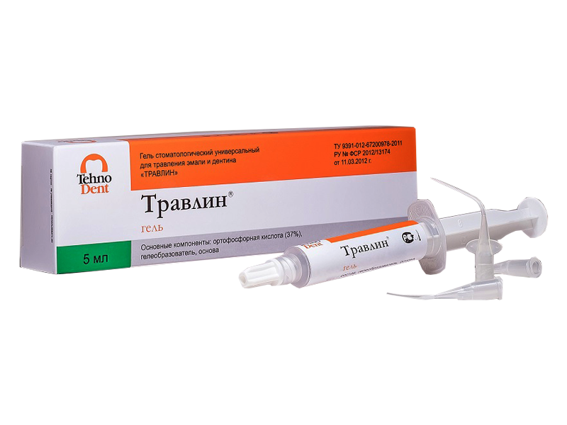 Травлин, гель стоматологический универсальный для травления эмали и дентина, 5 мл, Россия (ООО "ТехноДент") 012-01-005