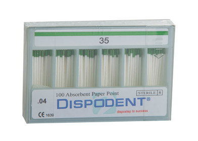 Штифт эндоканальный абсорбирующий бумажный "Dispodent", размер №35, конусность 04, 100 штук в упаковке, Вьетнам ("Перл Дент Ко., Лтд.")