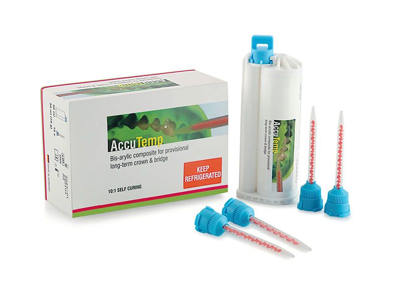 Описание: Accutemp — это самоотверждающийся бис-акриловый композит для изготовления высококачественных временных конструкций краткосрочного и долгосрочного использования. Обеспечивает естественную эстетику и флуоресценцию при любом освещении.
