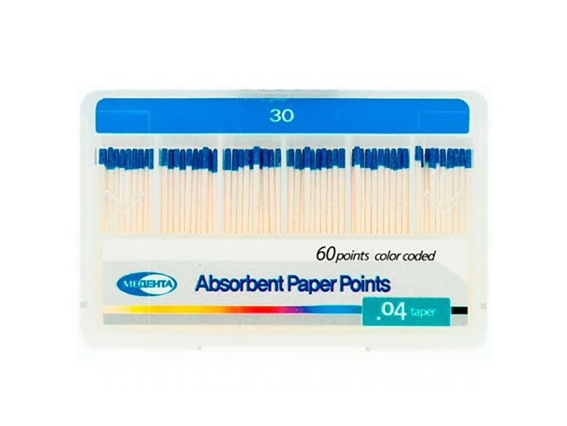 Штифт Медента эндоканальный абсорбирующий бумажный, размер №30, конусность специальная 04, 60 шт/упаковка, Республика Корея (Meta Biomed Co., Ltd.)