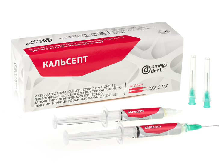 Кальсепт материал стоматологический на основе гидроокиси кальция для внутриканального заполнения при эндодонтическом лечении инфицированных каналов зубов, 2 шприца2,5 г, Россия (ООО НКФ Омега-Дент) ОД-ЛМ-7
