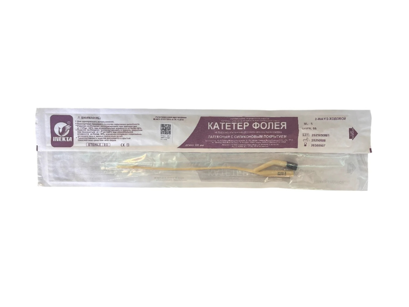 Катетер (зонд) двухходовой для длительной катетеризации мочевого пузыря. Размер по шкале Шарьера (Ch/Fr) 8: наружный диаметр 2,7 мм. Объем баллона 5 мл.