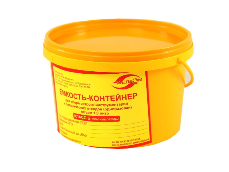 Емкость-контейнер МК-02-"МедКом" класса Б, 1 л для сбора органических отходов, одноразовый, Россия (НПФ "МедКом")
