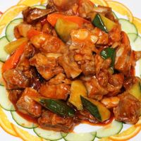 • Свинина тушеная в кисло-сладком соусе