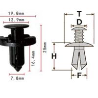 Клипса T-1025 (KJ-502,KJ-1232) автомобильная с нажимным штырьком, 25шт.