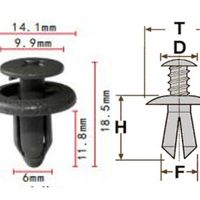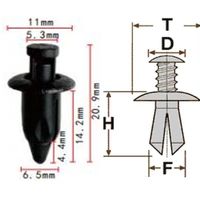 Клипса T-1059 автомобильная с нажимным штырьком, 25шт.