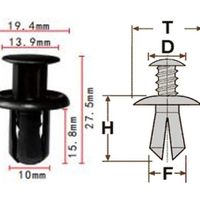 Клипса T-1019 (KJ-053,KJ-2163) автомобильная с нажимным штырьком, 25шт.
